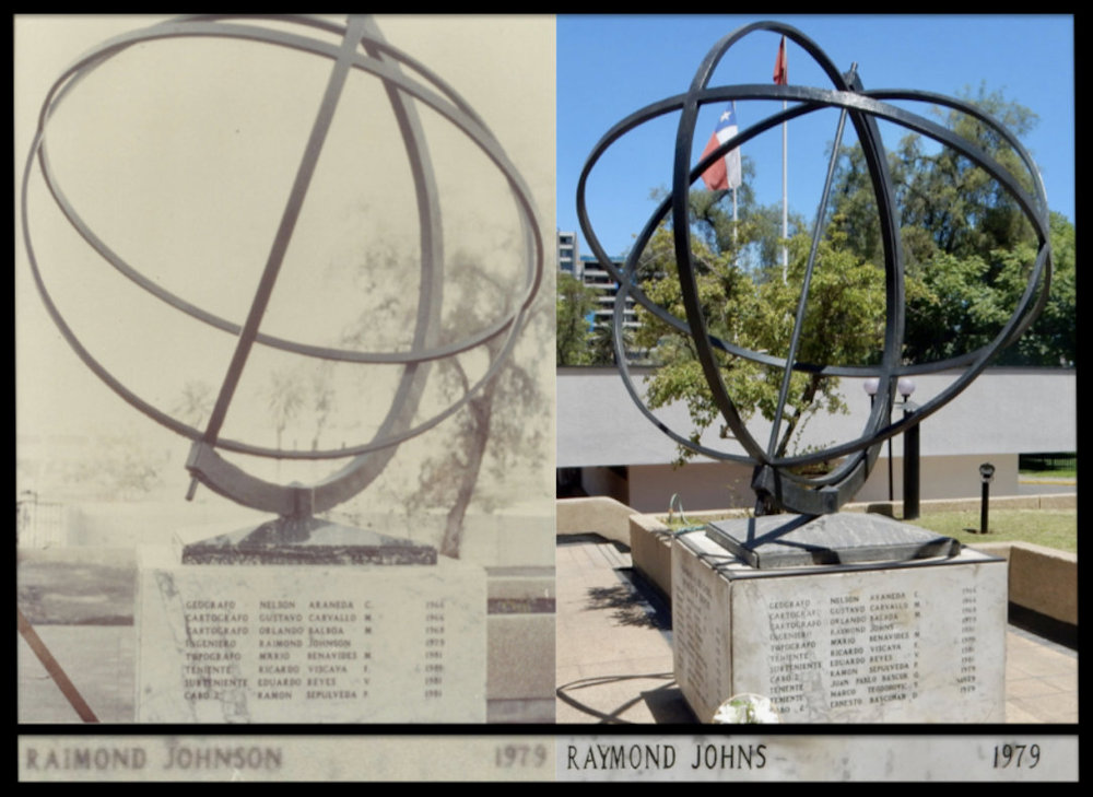 The Chilean government has erected a Monument to memorialize those individuals who lost their lives in the performance of the cartographic, geodetic and support missions of the Instituto Geografico Militar (IGM), the Chilean military mapping insitute. The photo on the left came from undated file photos in NGA’s IAGS archive. The photo on the right was taken by Jack Hild in January 2019. Initially Raymond’s name was misspelled, but has since been corrected.
